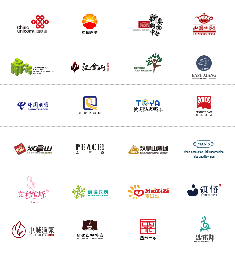 中国电信|中国联通|中国石油|汉拿山集团|新奥购物中心|太平鸟|山国饮艺|......